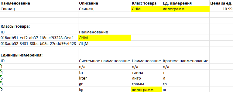 Также заполняйте Единицы измерения строго в соответствии с форматом, указанным в файле.
