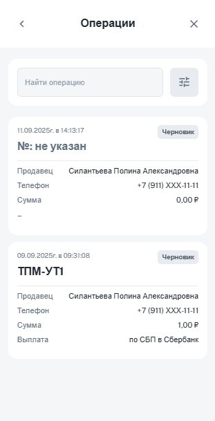 • Посмотреть историю операций.