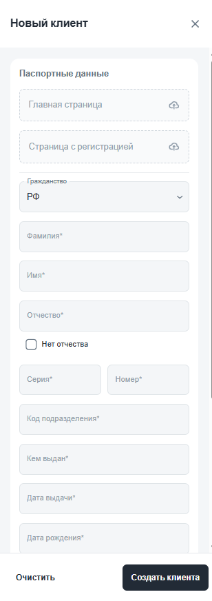 При создании операции из карточки клиента система автоматически перенаправит вас на первый шаг создания операции — «Данные клиента».
